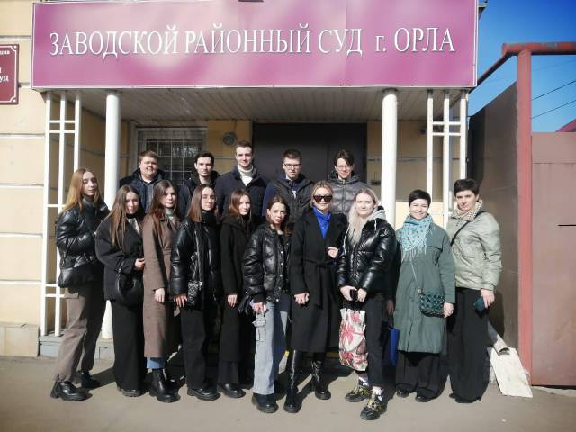 21 марта 2023 студенты 2 и 4 курсов юридического института Орловского государственного университета имени И.С. Тургенева посетили Заводской районный суд города Орла в сопровождении преподавателей юридического института Гущиной Т.В., Чернецовой М.В., Ибрагимовой З.Н.