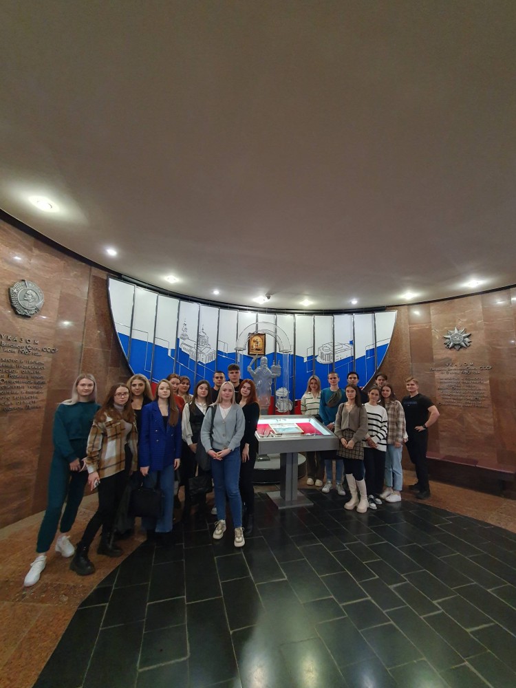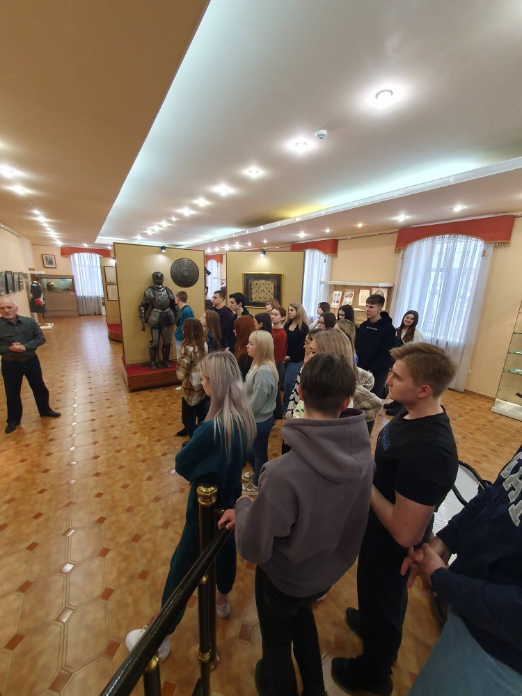 Ибрагимова З.Н. и студенты 2 го курса юридического института с представителем музея прошли по экспозиционным залам, посвященным страницам военной истории Орловского края и участию орловцев в крупнейших военных кампаниях XVIII-начала XX века. Изучили ключевые события в истории края – освобождение области от немецко-фашистских захватчиков во время Великой Отечественной войны. Посетили зал, посвященный участию орловцев в локальных военных конфликтах второй половины XX века. Изучили материалы, посвященные службе уроженцев Орловщины в Афганистане, Китае, Корее, Венгрии, Йемене, Кубе, Вьетнаме, Египте, Сирии, Анголе и других странах, а также участию наших земляков в контртеррористических операциях на территории России и боевых действиях на сопредельных территориях. Студенты познакомились с большой коллекцией стрелкового и холодного оружия разных исторических периодов и с образцами военной техники, размещёнными на площадке перед музеем.