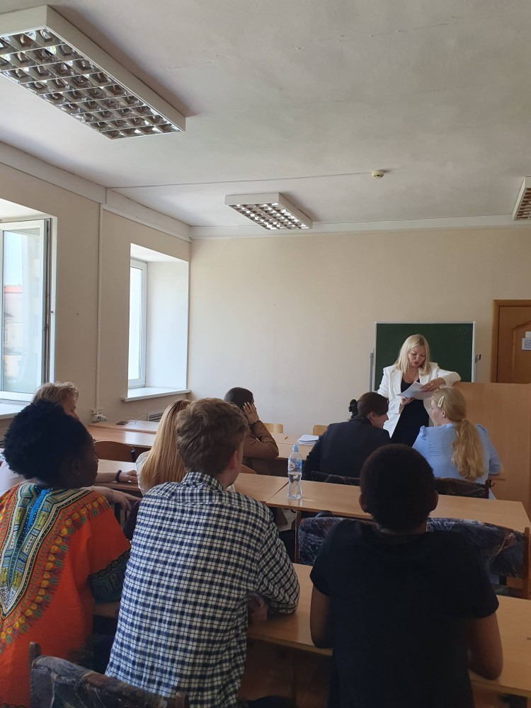 Первый этап - лекция "Язык юридического документа и специальные термины в юриспруденции. Какдидат филологических наук, доцент кафедры муниципального и экологического права Татьяна Владимировна Гущина рассказала студентам о том, как правильно строить устную и письменную речь и применять ее в профессиональной юридической деятельности. Тема лекции вызвала неподдельный интерес. Преподаватель и студенты подискутировали на ктуальные темы, связанные с уместностью употребления иностранных слов.