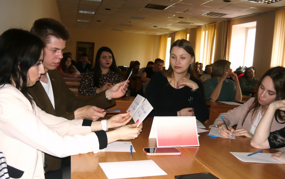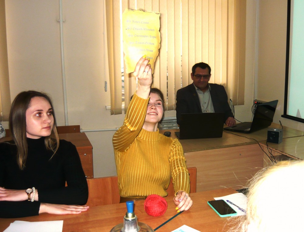 За красным игровым столом вне конкурса, но с обязательным подсчетом количества правильных ответов посредством карточек, сыграла команда 2-го курса специальности Правовое обеспечение национальной безопасности группы 91НБ в следующем составе: