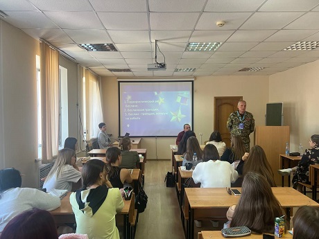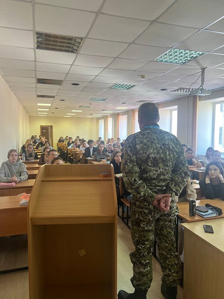 6 сентября 2024 года Васюков Игорь Викторович, ветеран боевых действий, ветеран спецназа, сотрудник регионального филиала фонда «Защитники Отечества» провел встречу со студентами 1 курса Юридического института, на которой обсудили понятие «терроризм» и его страшные последствия.