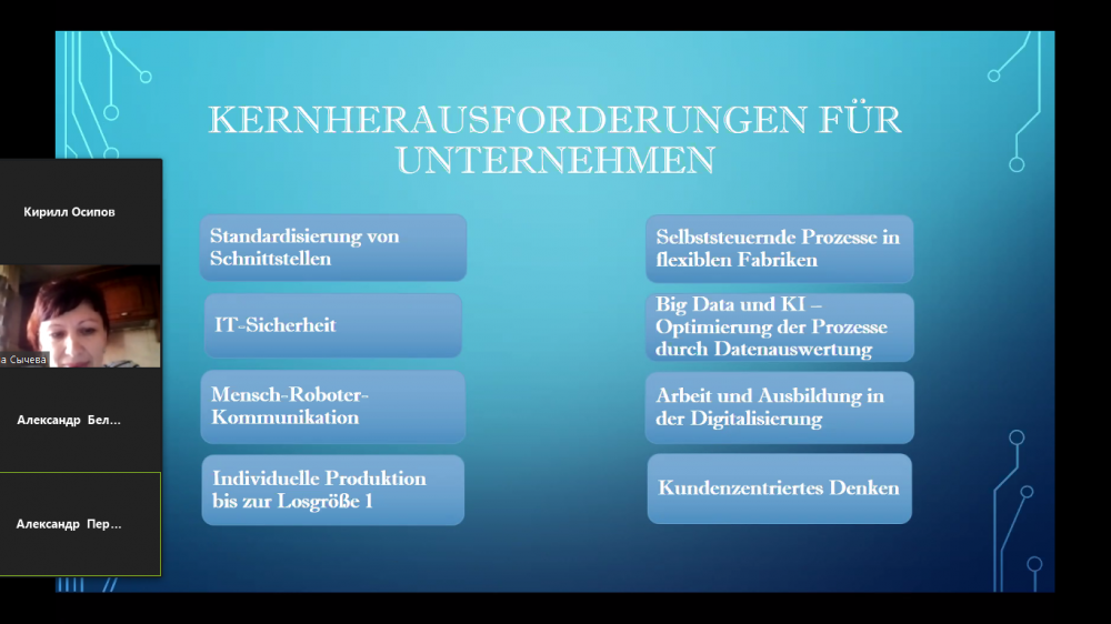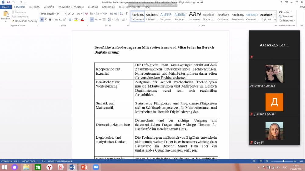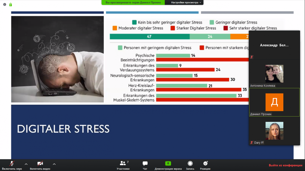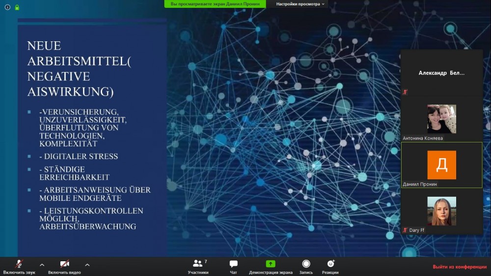 20 апреля 2020 был проведен Круглый стол на актуальную в наше время тему «Digitalisierung in der Arbeitswelt: Chancen und Risiken“ («Цифровизация в профессиональной среде: шансы и риски»). Рабочий язык: немецкий.
