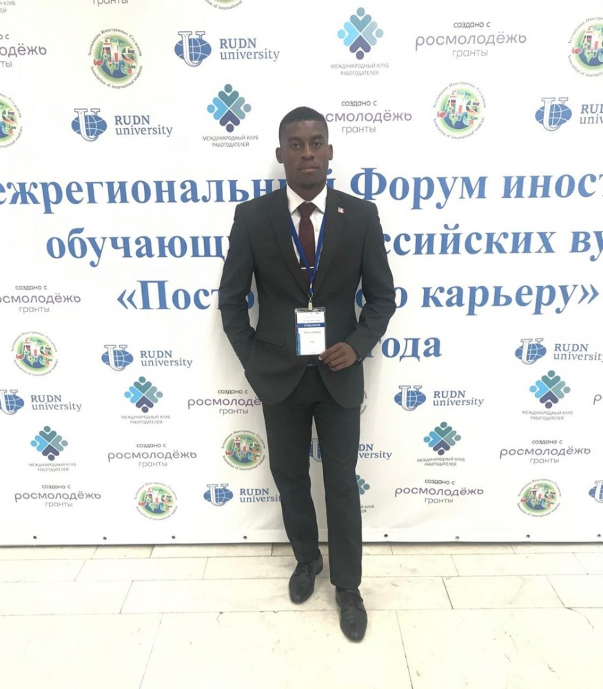 Межрегиональный форум иностранных обучающихся российских вузов «Построй свою карьеру» 21-23 сентября в РУДН проходит Межрегиональный форум иностранных обучающихся «Построй свою карьеру»! В работе форума принял участие студент Юридического института, обучающийся по профилю: Международное право и сравнительное правоведение; Президент Содружества гаитянских студентов Орловской области Джефф Телсон.