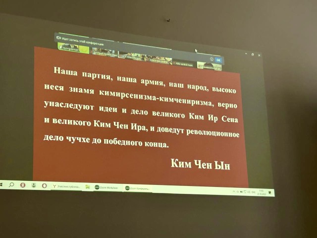 Продолжением цикла лекций стало выступление корейских коллег 21 октября этого года по такой теме как «Углубление и развитие кимерсенизма-кимчениризма» в деятельности Трудовой партии Кореи (ТПК) под руководством и непосредственном участии руководителя страны товарища Ким Чен Ына