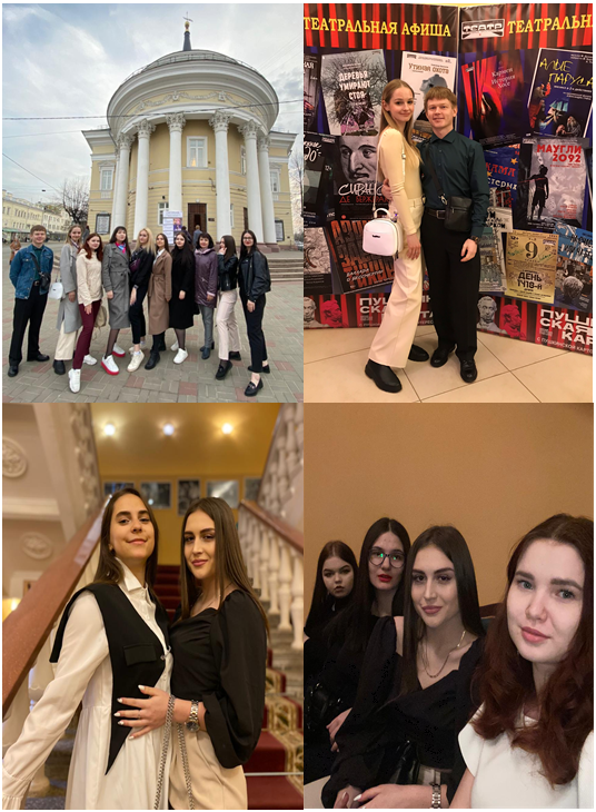 6 апреля 2023 года в рамках реализации проекта Министерства Культуры «Пушкинская карта» по популяризации культурных мероприятий среди молодежи, увеличения количества посещений обучающимися социокультурных мероприятий студенты групп 11-М совместно с куратором группы доцентом кафедры менеджмента и государственного управления Мусатовой Ириной Владимировной посмотрели спектакль «Люди Ламанчи» в театре «Свободное пространство».