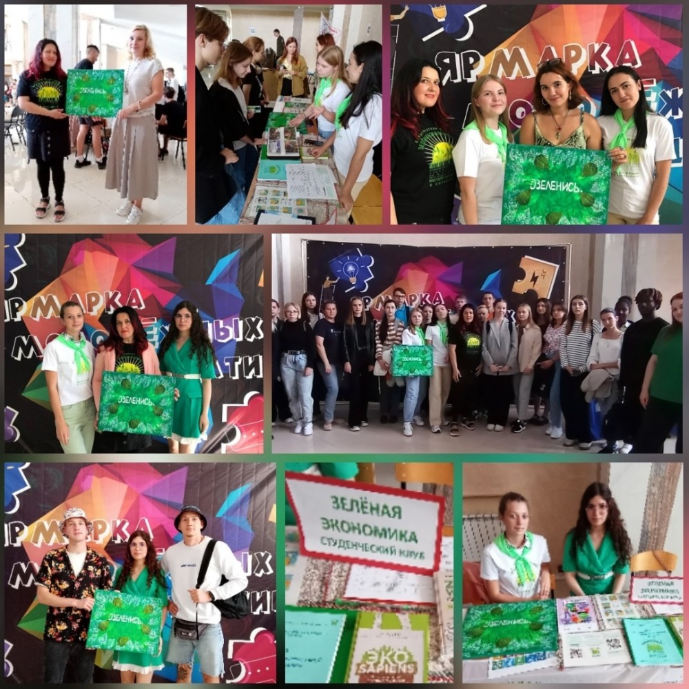 Студенческий клуб "Зеленая экономика" со своим куратором доцентом кафедры менеджмента и государственного управления Баженовой Е.Е. принимал участие 6 сентября 2023 года в работе Ярмарки Молодежных инициатив - 2023