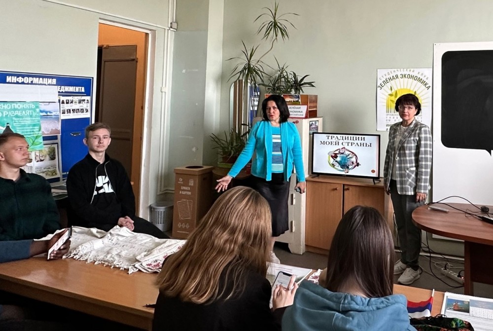 В рамках календарного плана ВР и реализации проекта "Зеленая экономика" (Общероссийская программа "Зеленые вузы России") доцентом кафедры МиГУ Баженовой Е.Е. и доцентом кафедры МиГУ Мусатовой И.В. была организован круглый стол "Традиции моей страны" для студентов 1-4 курсов направления подготовки 38.03.02 Менеджмент