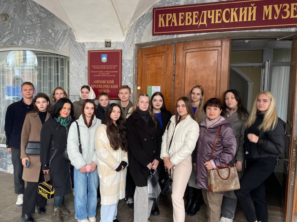 22 октября 2024 года в рамках реализации проекта Министерства Культуры «Пушкинская карта» по популяризации культурных мероприятий среди молодежи, увеличения количества посещений обучающимися социокультурных мероприятий студенты 1 и 4 курса совместно с кураторами Баженовой Е.Е. и Мусатовой И.В посетили Орловский краеведческий музей