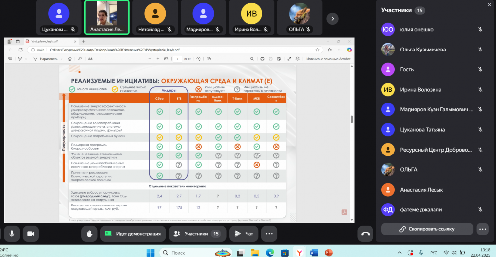 В завершении секционного заседания участники обменяльмнениями о роли климатической повестки в достижениии целей устойчивого развтития. Благодарим за участие!