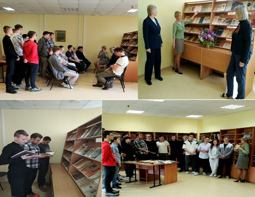 Мероприятие было направлено на воспитание у студентов патриотического сознания, верности своему Отечеству и поддержание памяти о геноциде советского народа нацистами и их пособниками в период Великой Отечественной войны 1941-1945 гг. Локтионова Е. В. познакомила студентов с тематической выставкой «Книги, с которыми мы победили» и провела интерактивную лекцию по теме «Строки, опалённые войной». Рассказала о коллекции книг, которые были изданы в 1941-1945 гг. Документальная, научно-популярная, художественная и публицистическая литература, созданная профессиональными писателями, корреспондентами и военными, вызвала живой интерес у обучающихся. На встрече звучала поэзия военных лет: стихи Ю. Друниной, В. Инбер, М. Стельмаха. Преподаватели обсудили со студентами трагедию, которая случилась с нашим народом в годы Великой Отечественной войны. Поговорили о необходимости сохранения памяти о преступлениях против человечности и потребности в отстаивания мири для себя, своих детей, внуков и правнуков в наши дни.