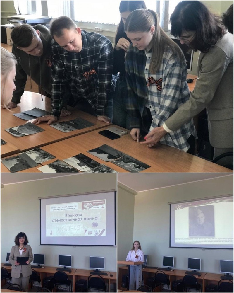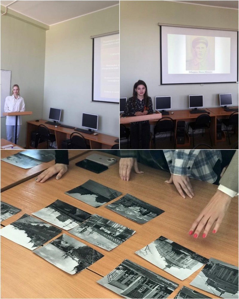 Затем Князева В.А. подробно рассказала студентам о ключевых вехах Великой Отечественной войны, о том, как жила страна в противостоянии с врагом, как «стар и млад» боролись за свою Родину и жизнь в ней после победы над врагом.