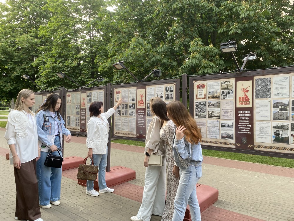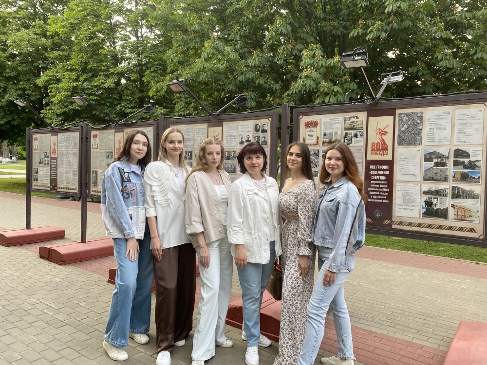 11 июня студенты группы 11М с куратором Мусатовой Ириной Владимировной посетили на Бульваре Победы выставку, посвященную Великой Отечественной войне. Она рассказывает о событиях, происходивших тогда на Орловщине, и о героях, которые защищали город.