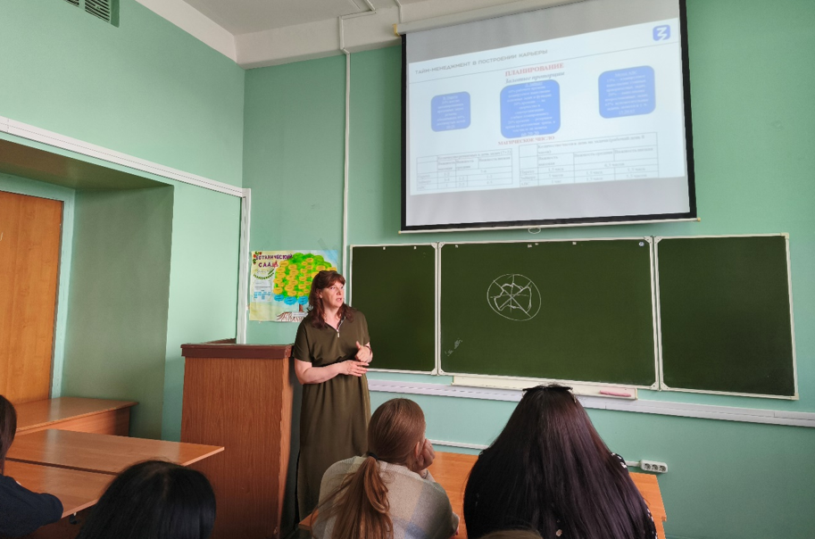 «В ходе мероприятия студенты узнали, как использовать технологии тайм-менеджмента в планировании и построении профессиональной карьеры в течение соей жизни, чтобы соблюдать баланс между работой и личной жизнью. Мы поговорили про основные элементы и технологии тайм-менеджмента, учились правильно ставить цели, работать в условиях многозадачности, выявлять и бороться с хронофагами», — рассказала Ирина Скоблякова.