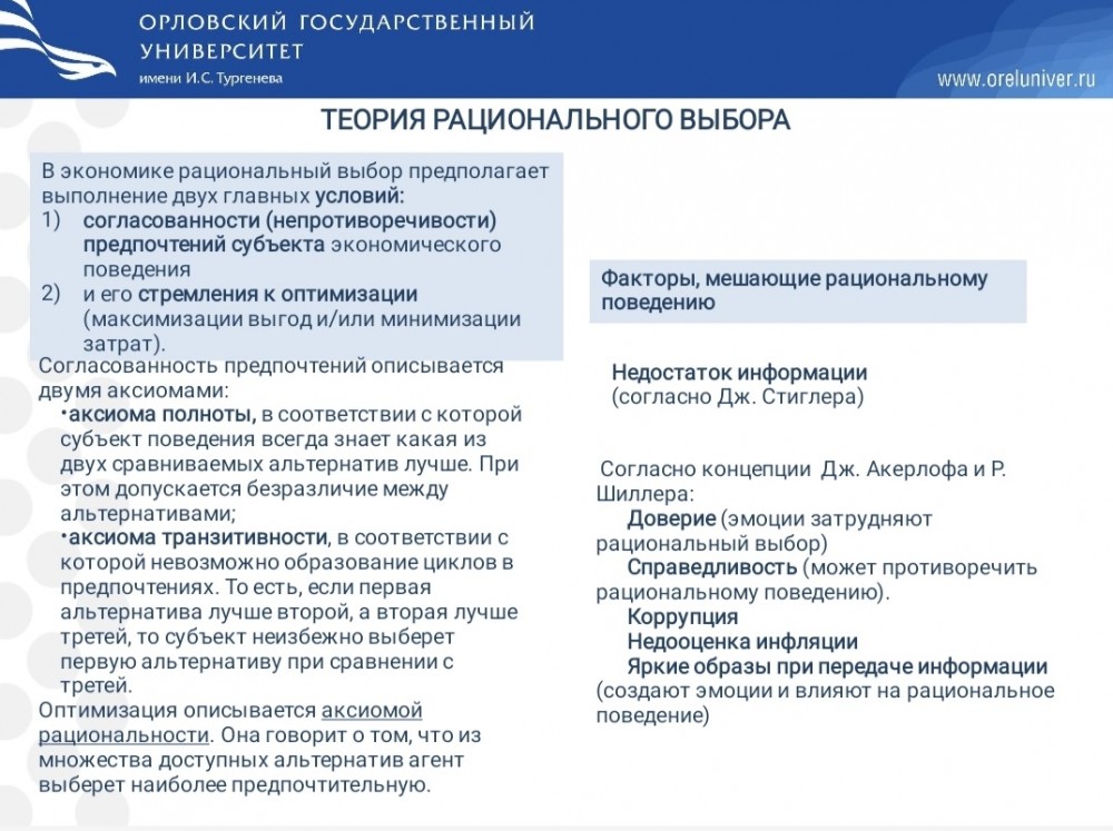 - рассмотрели этапы эволюции и современные концепции Теории рационального выбора,