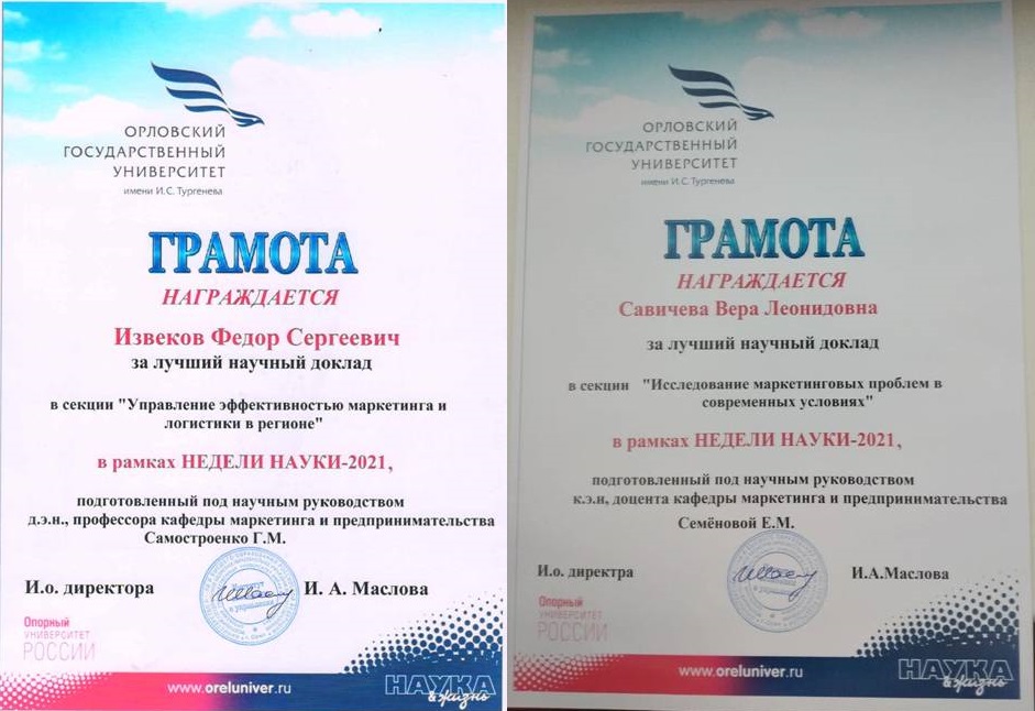 Лучшие студенческие научно-исследовательские работы и доклады были отмечены грамотами: