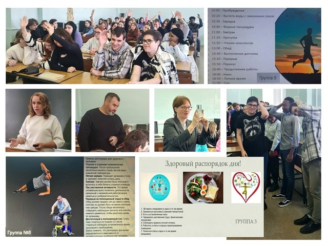 🏃♂🏃♀В рамках проекта «Формула здоровья» состоялся конкурс «Мои спортивные выходные». В ходе подготовительного этапа конкурса студентам рассказали об основах правильного питания как залоге здоровья. Затем ребята прошли опрос «Моё здоровье – в моих руках» (с использованием сервиса «Яндекс.Формы») и интерактивно обсудили выявленные проблемы. Попробовали сделать зарядку, включающую несложные упражнения для всех групп мышц, оптимальные для выполнения на рабочем месте. Для выполнения конкурсного задания студенты сформировали 10 команд и разработали свой вариант программы выходного дня с учетом полученных знаний и умений. Слайды команд-победителей были определены общим голосованием участников.