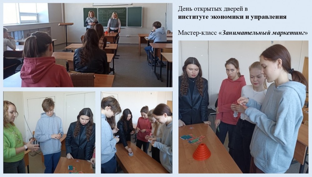 Выпускающие кафедры института экономики и управления подготовили для школьников интересные профессиональные игры: управленческий квиз, деловая игра «Тик-так бум: в мире экономики и финансов», бизнес-игра «Оптимизация бизнес-процесса производства елочных игрушек», викторина «Занимательный маркетинг».