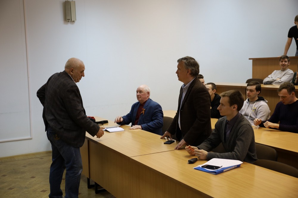 Заключительное слово было предоставлено заведующему кафедрой электрооборудования и энергосбережения, д.т.н., профессору Качанову А.Н., отметившего удивительнейшую связь событий и времен тем фактом, что в сражениях, о которых шла речь в течение всей встречи, доблестно принимали участие, как и его ближайшие родственники, так и родственники других сотрудников кафедры.
