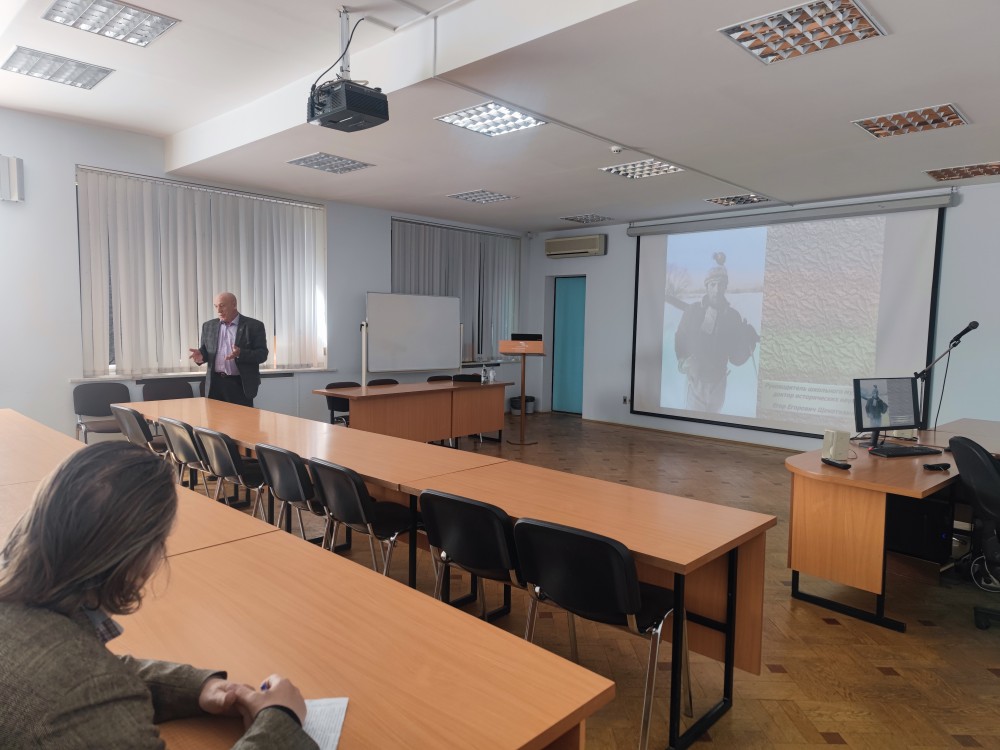 С приветствием выступил доцент кафедры Коренков Д.А. и передал слово гостю мероприятия, доктору исторических наук, профессору Орловского государственного университета имени И.С. Тургенева, руководителю военно-исторического центра «Битва за Орел» Щекотихину Егору Егоровичу, который поделился результатами многолетних исследований в области истории периода Великой Отечественной Войны.