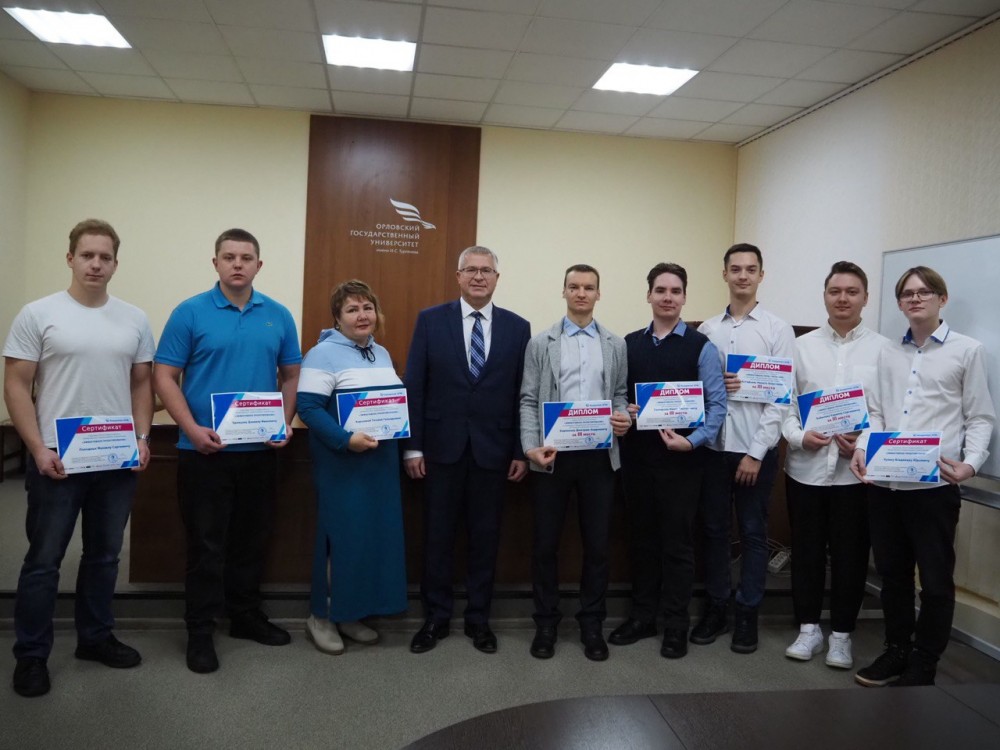 27.12.2023 г. состоялось торжественное награждение призёров V Всероссийского межвузовского соревнования в компетенции «Эффективное проектирование» - команды студентов четвертого курса направления подготовки 13.03.02 в составе Гончарова Ивана (капитан команды); Астафьева Никиты; Бобылева Кирилла. Дипломы за III место были вручены ректором Александром Анатольевичем Федотовым.