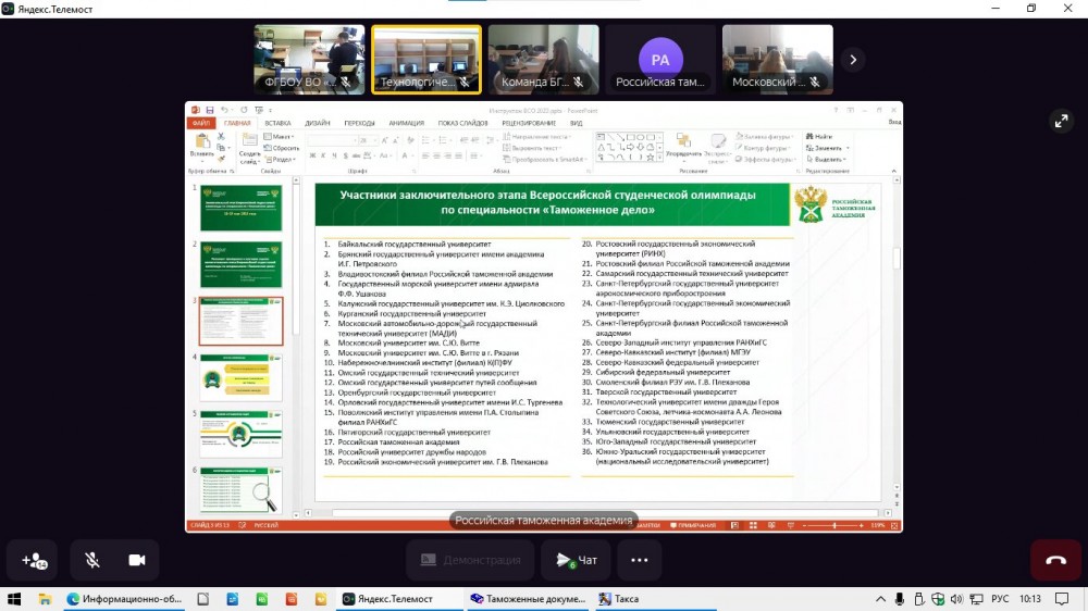 Заключительный этап Всероссийской студенческой олимпиады по специальности "Таможенное дело"