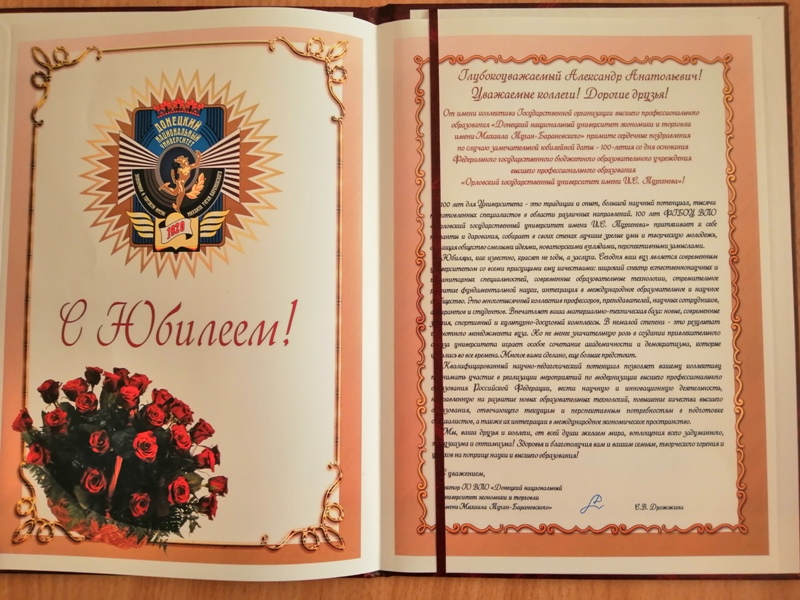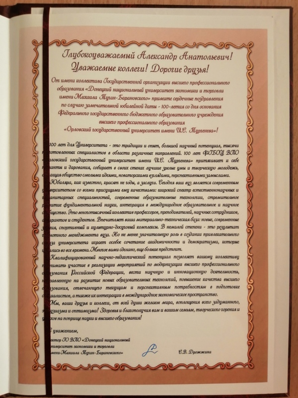 Коллеги из Донецкого национального университета экономики и торговли имени Михаила Туган-Барановского передали поздравительный адрес от Ректора Светланы Владимировны Дрожжиной.