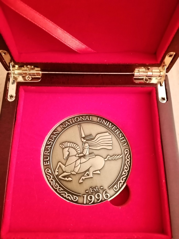 Ректор Евразийского национального университета им. Л.Н. Гумилева, г. Нур-Султан (Астана), Республика Казахстан передал в дар нашему вузу памятную медаль университета.