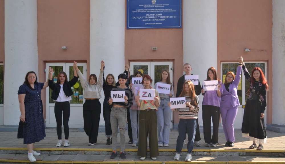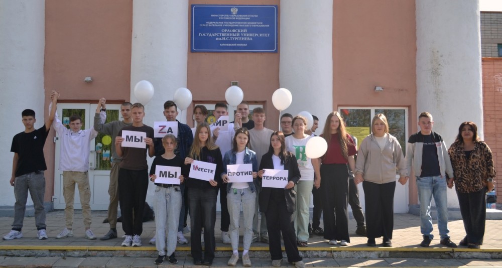 Студенты и преподаватели КФ ОГУ имени И.С.Тургенева провели акцию «Мы против терроризма», приуроченную ко Дню солидарности в борьбе с терроризмом.
