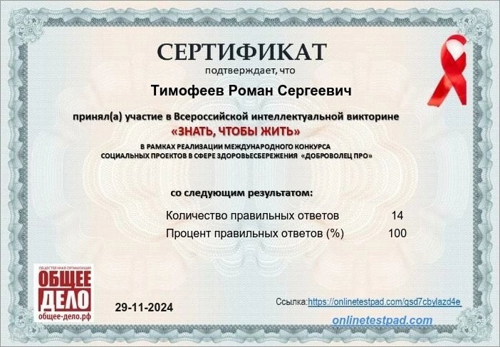 Для закрепления результата студенты приняли участие во Всероссийской интеллектуальной викторине «Знать, чтобы жить».