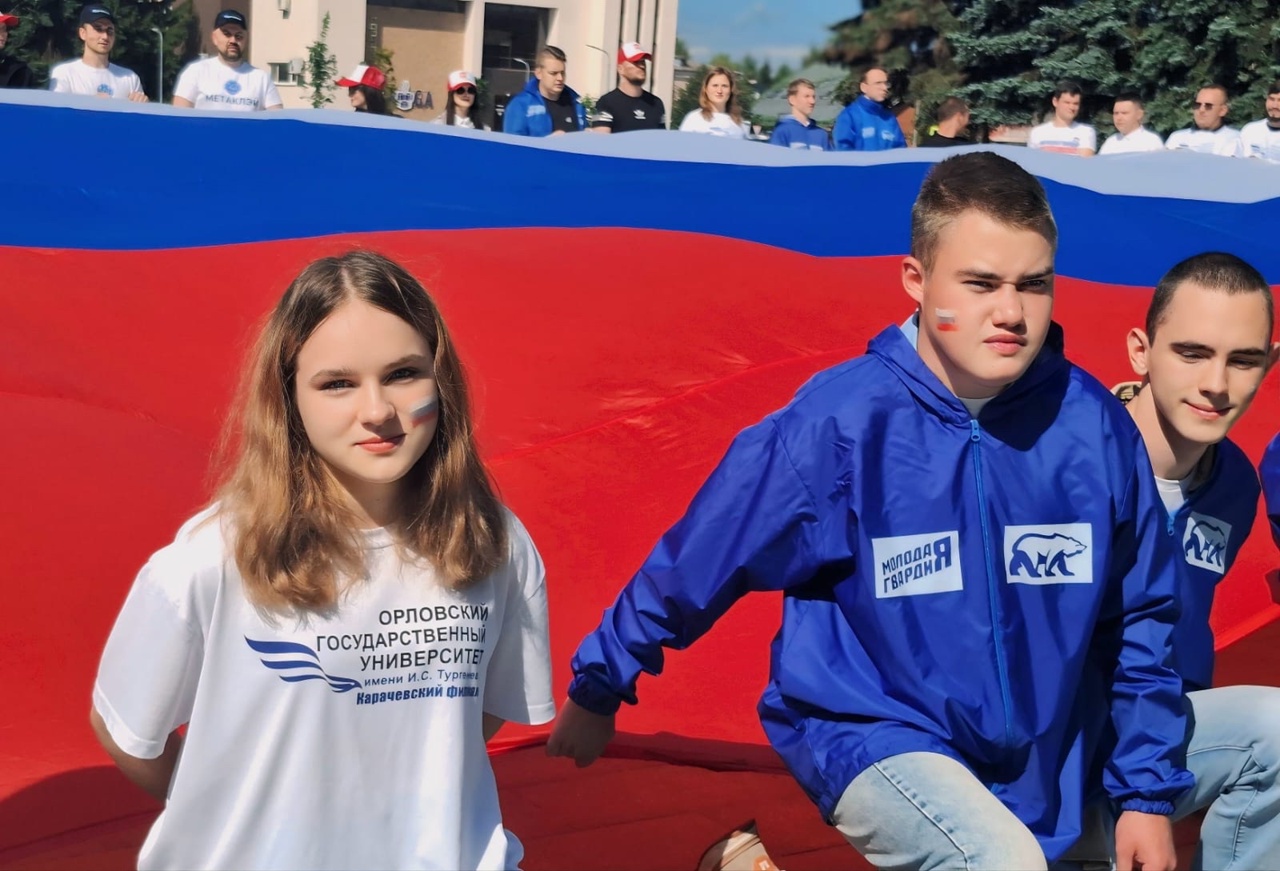 Активисты «Молодой Гвардии Единой России» совместно со студентами-волонтерами Карачевского филиала Орловского государственного университета имени И.С. Тургенева и Молодежными Советами АО «Карачевский завод «Электродеталь» и АО «МЕТАКЛЭЙ» провели патриотическую акцию на центральной площади города Карачева. Участники мероприятия растянули огромный флаг России, символизируя единство и гордость за свою страну.