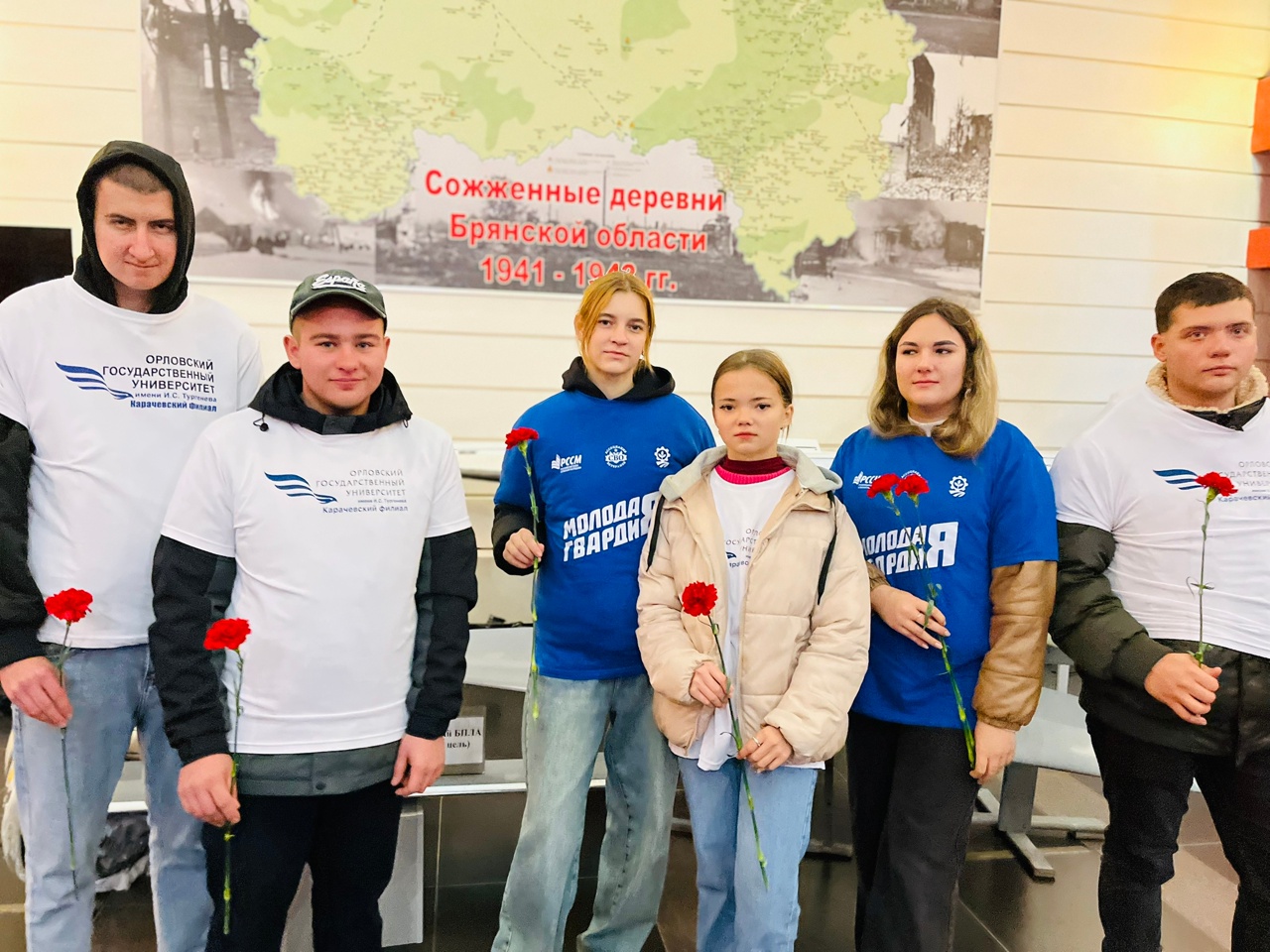 Сегодня, в этот скорбный день, студенты нашего филиала приняли участие в памятном митинге, посвященном 84-й годовщине трагических событий в деревне Хацунь Карачевского района.