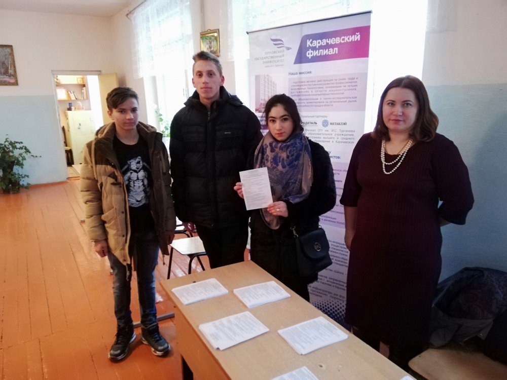 Преподаватели Карачевского филиала ОГУ им. И.С. Тургенева выступили перед учащимися 9-11 классов школ города и рассказали о современных профессиях и специальностях, которые можно получить в нашем филиале.
