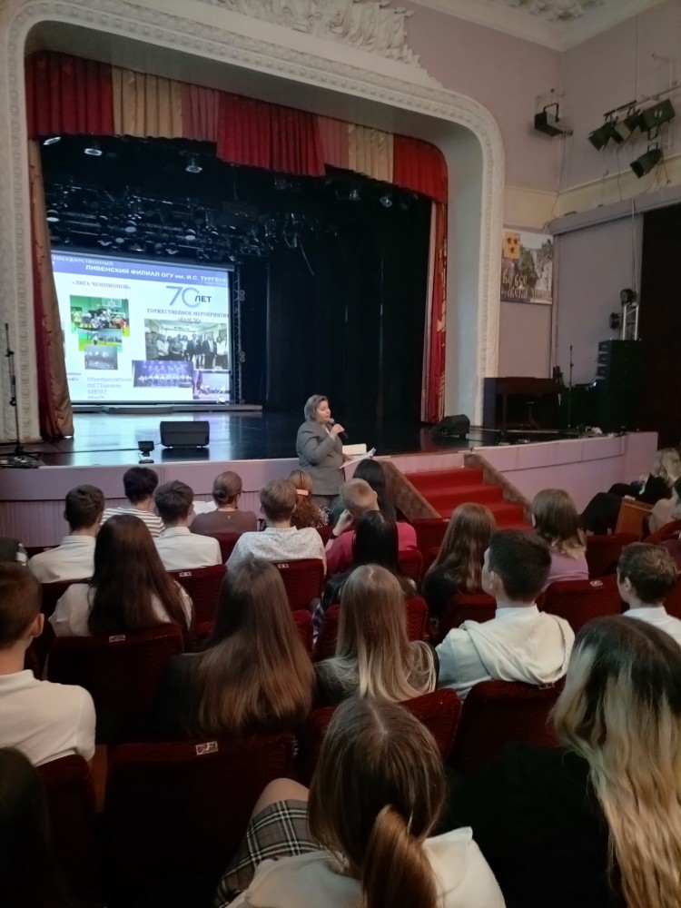 7 февраля 2024 г. в ЦМ «Лидер» в рамках реализации плана профориентационных мероприятий на 2023/2024 учебный год, Ливенский филиал ОГУ им. И.С. Тургенева принял участие в открытом городском мероприятии для учащихся 9-х классов школ г. Ливны «Кем быть? Профессия или призвание».