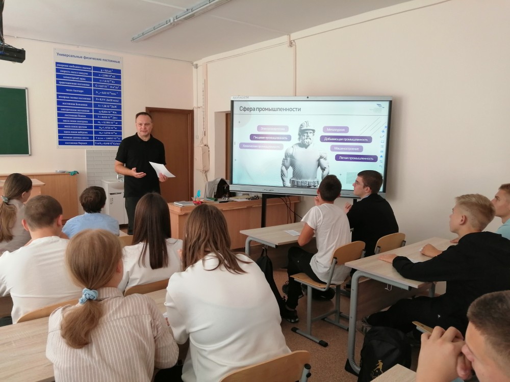 В рамках профориентационной работы 3 октября 2024г. преподаватели филиала Кошелев В.Е. и Звягина Е.А. встретились с учащимися 9 и 10 класса МБОУ СОШ №4 г. Ливны. В ходе мероприятия школьникам была предоставлена информация о наиболее востребованных специалистах на рынке труда в России на 2024г. Особое внимание было уделено роли инженерных кадров в развитии экономики страны и подготовки специалистов в области машиностроения и информационных технологий в Ливенском филиале.