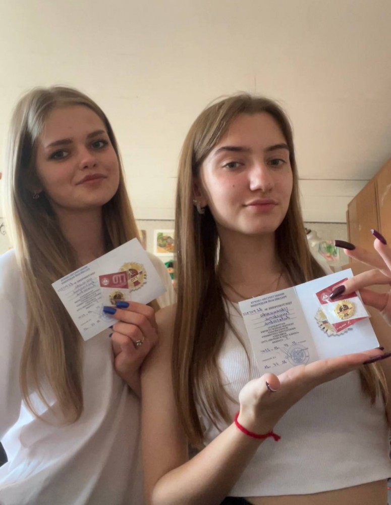 Студенткам группы ТС11 Анастасии Шепелевой и Елизавете Иванниковой были вручены золотые значки ГТО в сдаче нормативов Всероссийского физкультурно-спортивного комплекса «Готов к труду и обороне». Так держать!