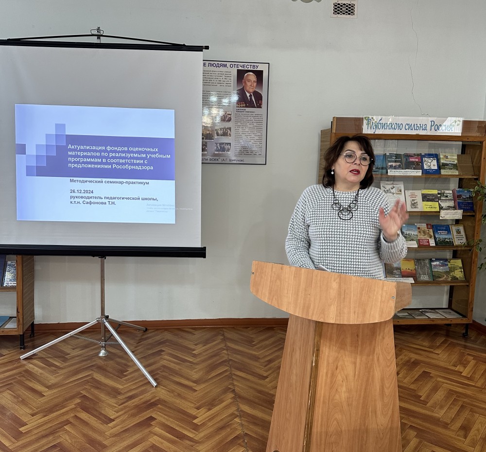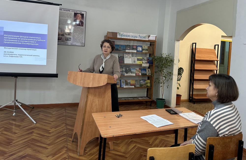 Преподаватели филиала приняли участие в методическом семинаре на тему «Актуализация фондов оценочных материалов по реализуемым учебным программам в соответствии с предложениями Рособрнадзора». На семинаре выступила Дорохова Г.Д., зам. директора по УМР с сообщением о результатах выборочной проверки фондов оценочных средств, разработанных преподавателями по реализуемым учебным дисциплинам (модулям). Сафонова Т.Н., руководитель педагогической школы рассказала об области применения оценочных средств, о требованиях ФГОС к результатам освоения образовательной программы, о структуре и спецификации комплекта оценочных средств, о распределении оценочных средств по компетенциям.