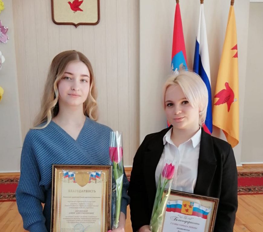 Зал заседаний администрации города Ливны был наполнен добрыми улыбками, нежными цветами, теплой атмосферой - на торжественный прием, посвященный Международному женскому дню, были приглашены женщины – представительницы трудовых коллективов, студенты, внесшие значимый вклад в развитие города. Доцент кафедры инженерного образования, ответственный за науку Звягина Елена Александровна и обучающиеся филиала Токарева Алина и Дорофеева Алина (гр. Т21) были награждены почетной грамотой и благодарностями администрации города за активную гражданскую позицию, большой личный вклад в общественно-политическую деятельность, за активное участие в развитии молодежного волонтерского движения, за неравнодушное отношение к проблемам города и его жителей.