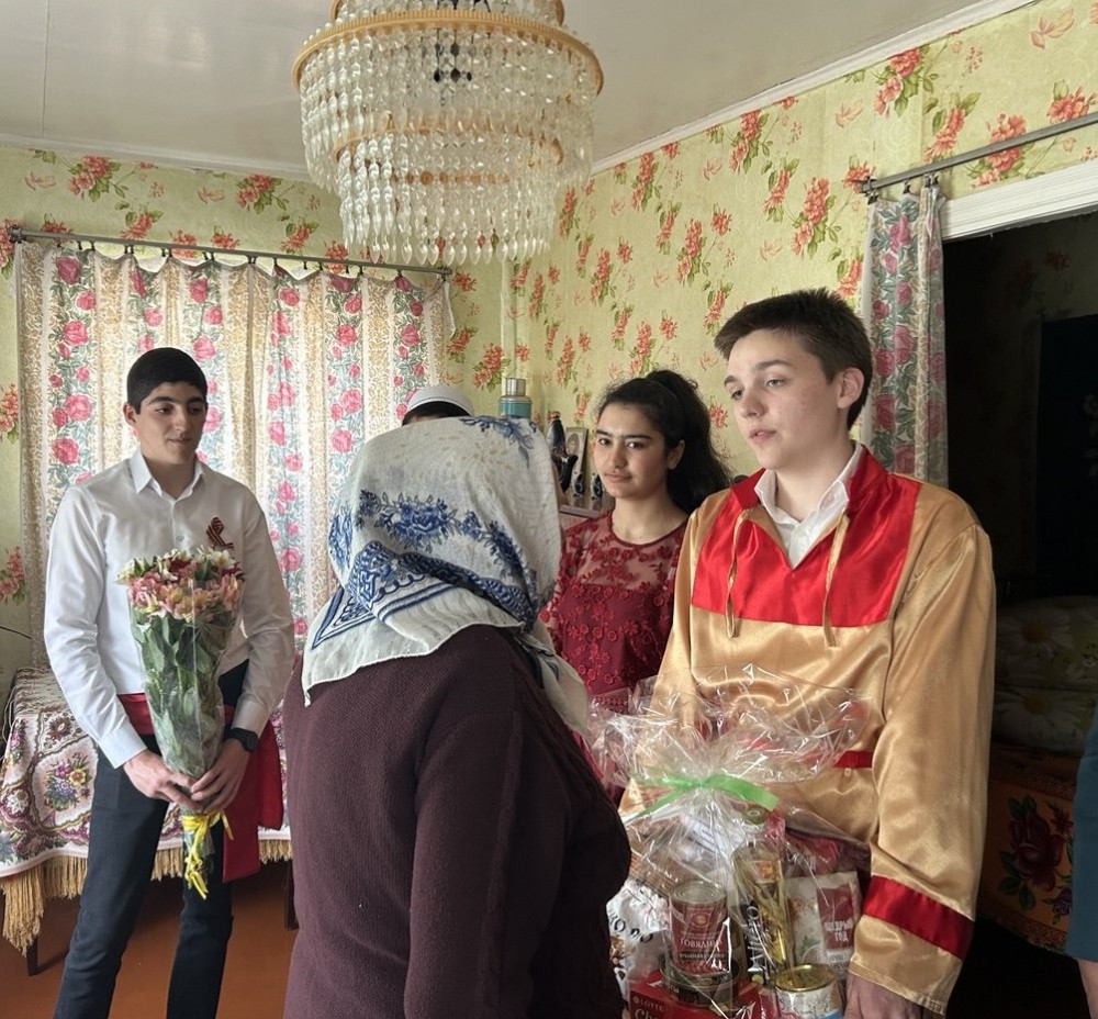 - Сегодня первый день, когда наши студенты, волонтёрская группа, представленная различными национальностями, обучающимися в филиале, приходят с самыми искренними, добрыми пожеланиями и поздравлениями к ветеранам Великой Отечественной войны, представителям тружеников тыла и детей войны, - отметила директор филиала Елена Колякина.