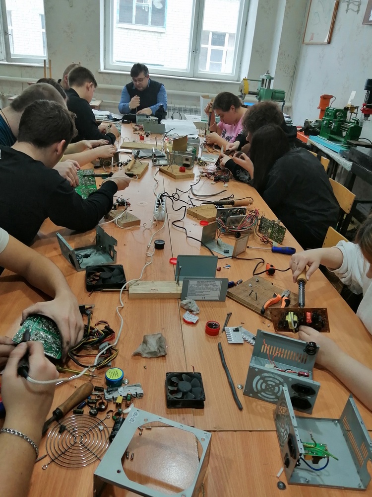 Студенты 3 и 4 курсов специальности 15.02.14 в лаборатории филиала выполняли монтаж и наладку моделей элементов систем автоматизации на основе самостоятельно разработанной технической документации.