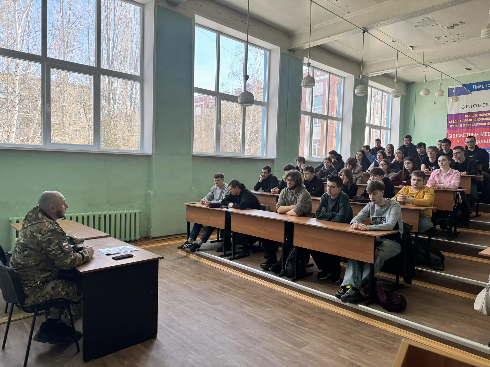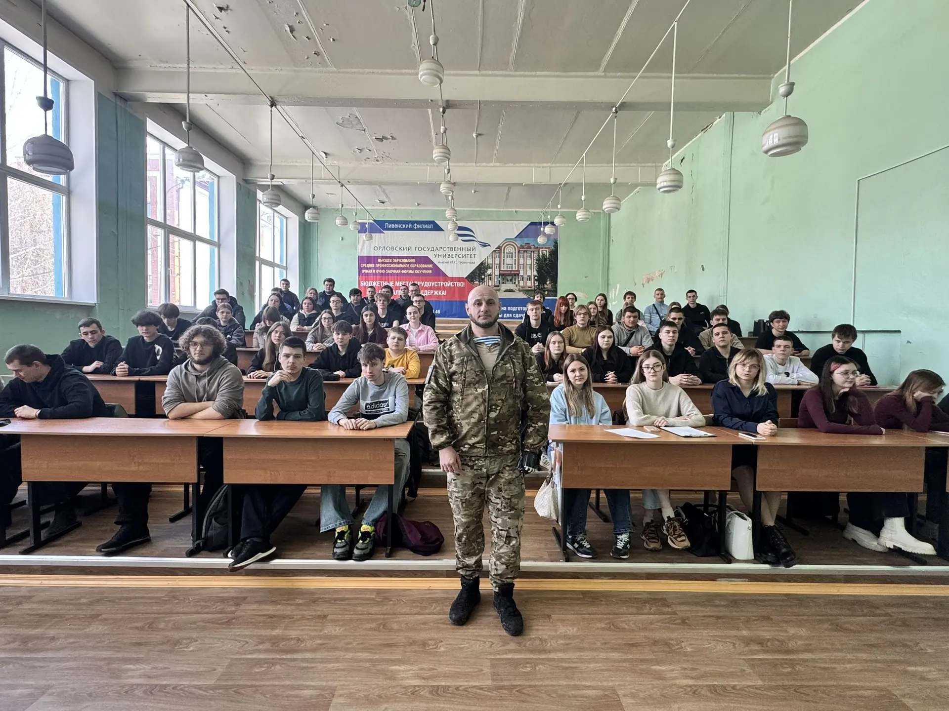 25 марта 2026г. в стенах Ливенского филиала ОГУ им. И.С. Тургенева прошел открытый диалог, посвященный возможностям современной военной службы. Спикером мероприятия стал человек, чьи заслуги перед Отечеством отмечены высокими государственными наградами: орденом Мужества и Георгиевским крестом IV степени.