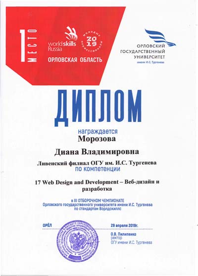 Морозова Диана - «Веб-дизайн и разработка».
