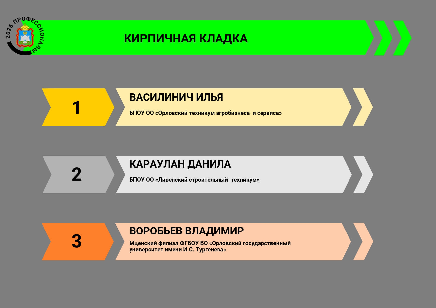 Конкурсанты 2026 года, показавшие лучшие результаты на региональном этапе, представят Орловскую область на итоговых соревнованиях уже в апреле, а завершающим событием серии мероприятий Чемпионатного движения станет Всероссийский финал по наиболее востребованным компетенциям в ноябре в Санкт-Петербурге.