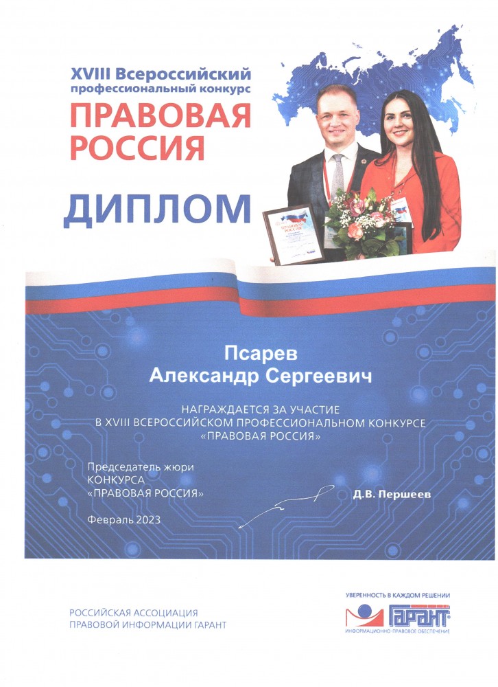 Февраль 2023 г. ХVIII Всероссийский профессиональный Конкурс «Правовая Россия»