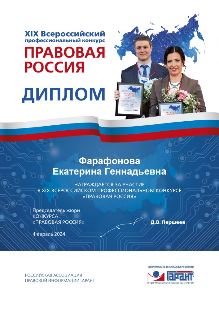 Февраль 2024 г. Всероссийский профессиональный конкурс «Правовая Россия»