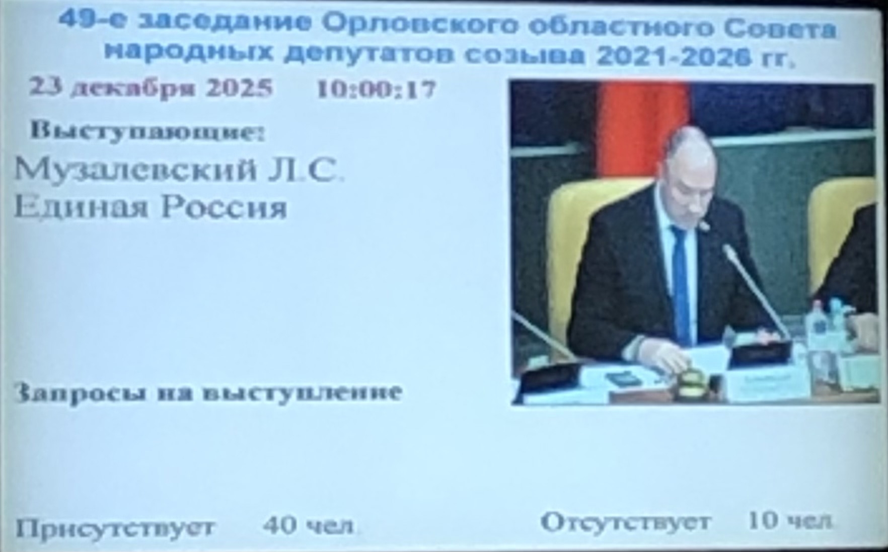 23 декабря 2025 г. Участие в 49-ом заседании Орловского областного Совета народных депутатов созыва 2021-2026 гг.