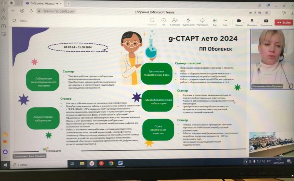 23 апреля 2024 года состоялась профориентационная встреча с представителями компании Герофарм в онлайн формате.
