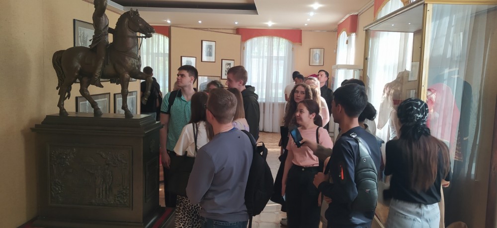 Студенты познакомились с рядом интересных экспозиционно-художественных комплексов и редких коллекций. Среди экспонатов – образцы вооружения и воинской амуниции средневекового воина, а также участников войн 18-21 вв. Изобразительный ряд включает портретную галерею орловцев – участников Отечественной войны 1812 года, графические работы, запечатлевшие Орловскую область после освобождения в 1943 году от немецко-фашистских захватчиков. Значительное место занимают документы и фотографии, рассказывающие о событиях Русско-японской войны 1904-1905 годов, Первой мировой и Гражданской войн.