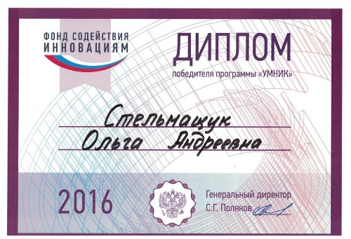 16 ноября 2016 года состоялся очный этап VI молодежного регионального конкурса инновационных проектов – «УМНИК». Конкурс проектов в Орловской области был аккредитован Фондом содействия развитию малых форм предприятий в научно-технической сфере. 28 февраля 2017 года было проведено награждение победителей конкурса «УМНИК», представленных для финансирования 1-го года. ПОЗДРАВЛЯЕМ победителя от нашей кафедры в секции «Биотехнология» магистранта группы 61БТ-м Стельмащук Ольгу Андреевну с проектом «Разработка технологии липосомальных частиц для контрастирования в ультразвуковой диагностике».