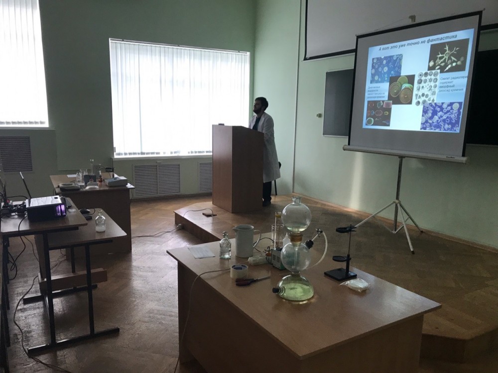 В другой аудитории в это же самое время проходил семинар о возможности существования кремниевой жизни под руководствои доцента кафедры Винокурова Андрея Юрьевича, который сопровождался экспериментами по изучению свойств кремния и углерода как элементов с близкими строением и свойствами. Участники согласились, что несмотря на всю фантастичность жизни на основе элемента под номером 14 в аномальных, по нашем меркам, условиях такое все-таки может быть. С этим легче согласиться, если отказаться от "водно-углеродного" шовинизма, который лежит в основе действий современных искателей другой жизни во Вселенной.