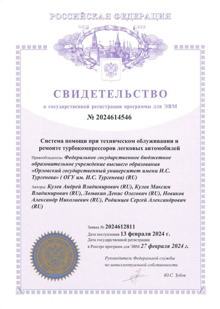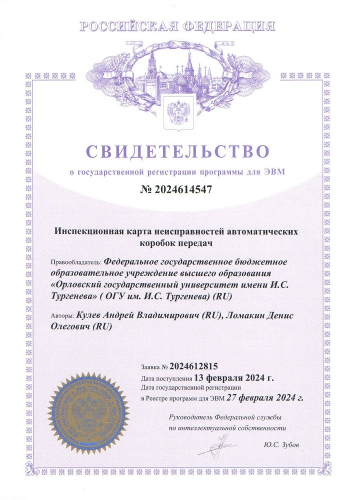 Сотрудниками кафедры сервиса и ремонта машин получены свидетельства о государственной регистрации программ для ЭВМ.